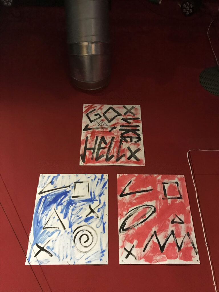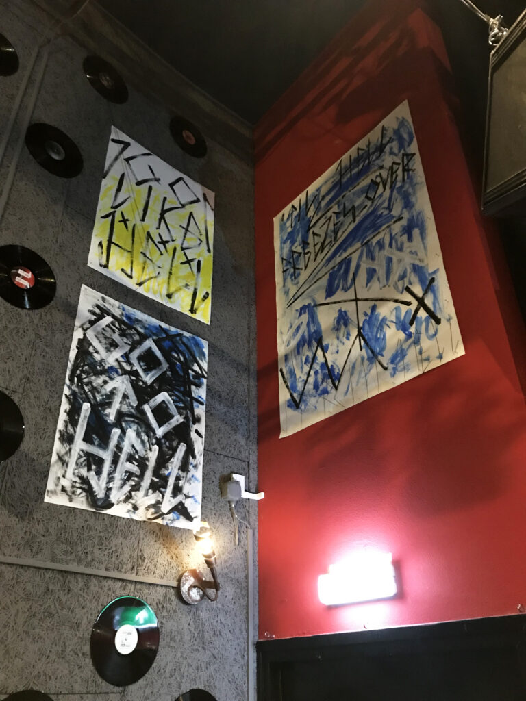 De minimalistische songteksten van Rene SG (This Sucks, Go To Hell, Hell Yeah) keren terug op grote ruw geschilderde en getekende formaten papier. De werken zijn t/m 21 februari te zien op de muren in de zaal en in de hal van Volta, Houtmankade 336 Amsterdam.”