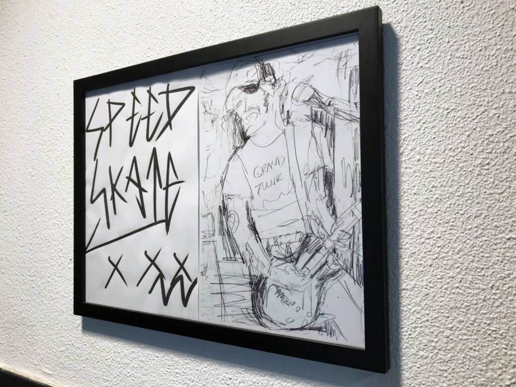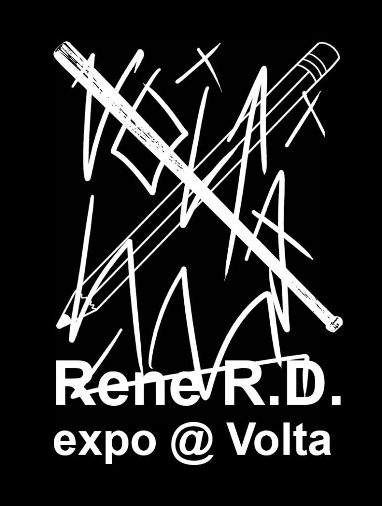 “Met punkartrockband Rene SG repeteerde Rene jarenlang elke week in Volta, deed een aantal optredens in de zaal en het Parool kwam ooit langs om de band te filmen terwijl ze het nummer “Let’s Go Ajax” speelden (nog steeds te vinden op YouTube). Na 12 jaar, 350 shows in binnen- en buitenland en 4 studioalbums kwam er een einde aan Rene SG maar Rene (afgestudeerd als beeldend kunstenaar aan de Rietveld Academie) pakte het tekenen en schilderen weer op met dezelfde punkenergie: nu onder de naam Rene R.D. (raw drawings).